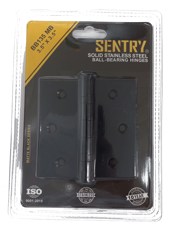 SENTRY 2BALL BEARING LOOSE PIN HINGE SOLID STAINLESS STEEL IN MATTE BLACK FINISH