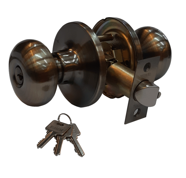 FEATURES : • Tubular Lockset with square spindle • Solid brass or Stainless steel construction • Adjustable Backset fit 60mm (2-3/8 inch) and 70mm • Fit doors 35mm (1-3/8 inch) to 50mm (2inch) thick PRODUCT CODE: • T682 – Entrance Function (w/ key) AVAILABLE FINISH: • SS – Satin Stainless Finish • AB – Antique Brass Finish