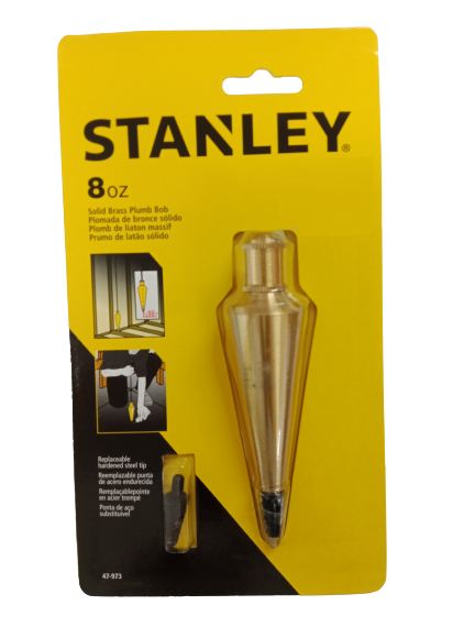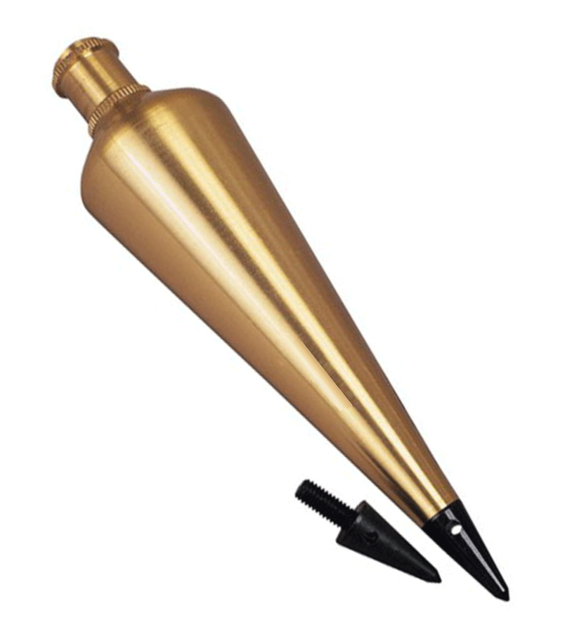 FEATURES: • Polished-lacquer, solid-brass construction is durable and rust resistant • Replaceable, hardened steel tip is long-lasting • Screw top simplifies attaching string to center of plumb • Comes with extra tip • Through hole for easy tightening • Length : 8.7 inches • Weight: 8 oz