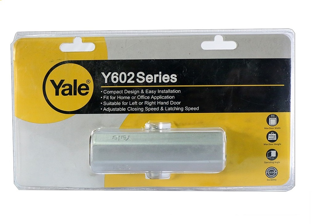 Yale surface mounted door closers are particularly quick and easy to install, requiring a minimum amount of preparation on the door and frame. With UL or EC certificates, our door closers offer high quality with long durability, adjustable arm height, opening angle and closing speed, with various arm types that are flexible to fit to any situation under different type of mounting, closer position and space limitations. SPECIFICATIONS: Max Door Width : 800mm Max Door Weight : 45kg Operating Angle : 0-150 degree Durability : tested for 200,000 cycles Available color : Brown & Silver Aluminum